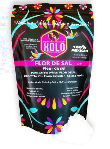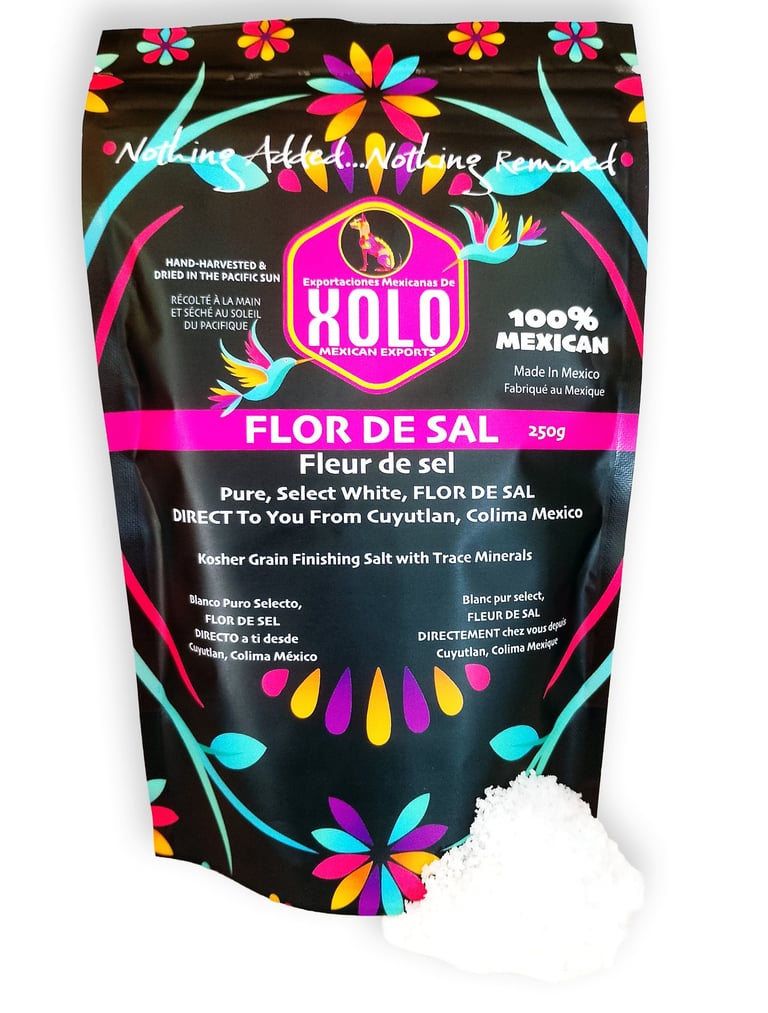 Hand-harvested from the Cuyutlán Lagoon in Colima, Mexico, XOLO Pure White Fleur de Sel elevates every dish with its delicate texture and refined flavor. Known as “white gold” in the chef community, it is cherished worldwide for its exceptional quality and artisanal craftsmanship.